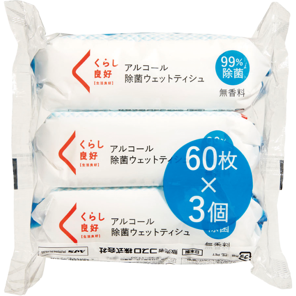 くらし良好アルコール 除菌ウェットティシュ3個パック 60枚×3個
