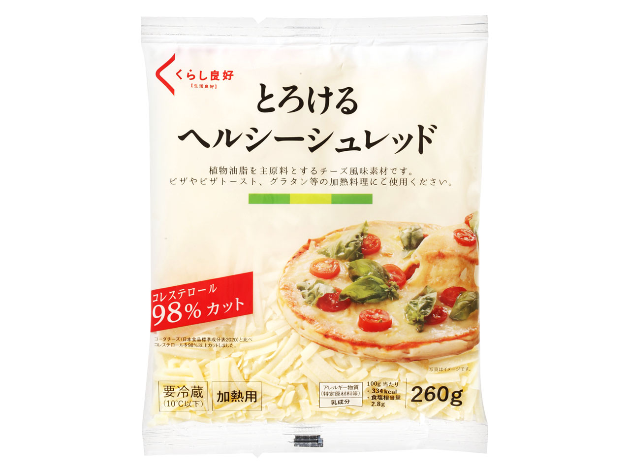 植物油脂が主原料のチーズ風味素材。 ゴーダチーズと比べ、コレステロールを98%以上カット。
